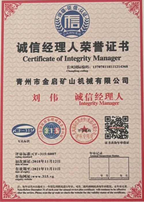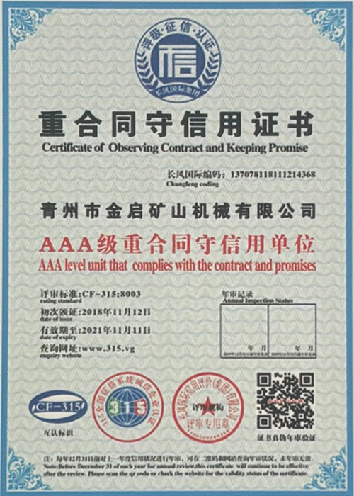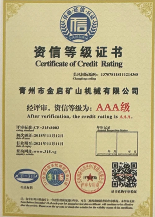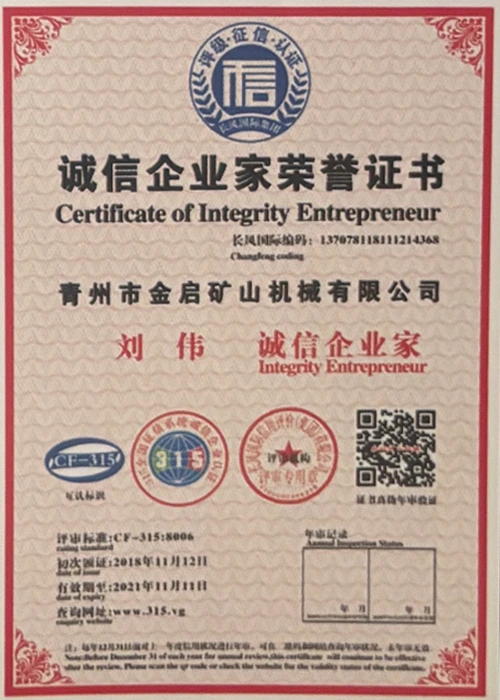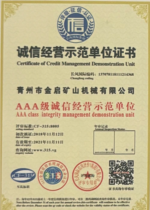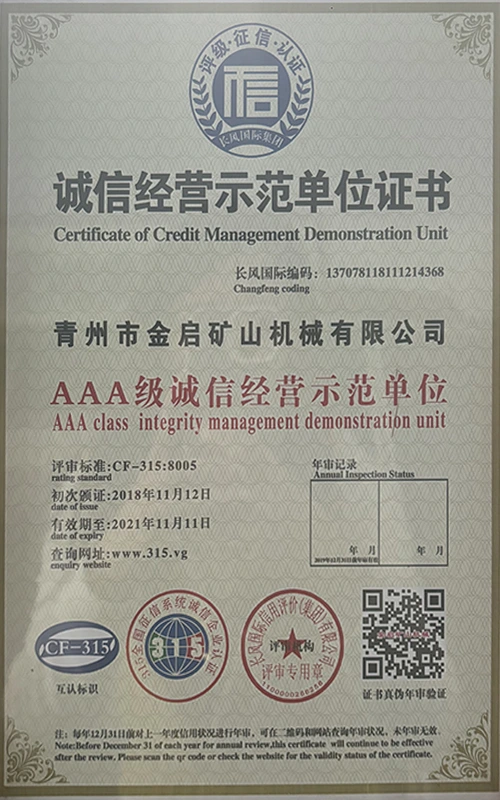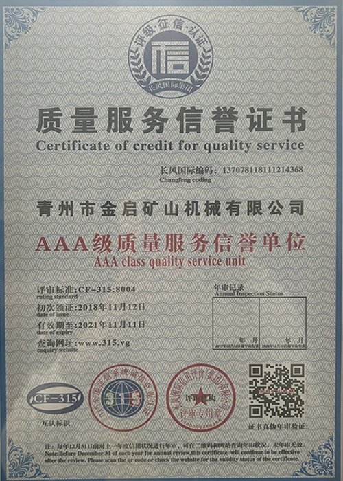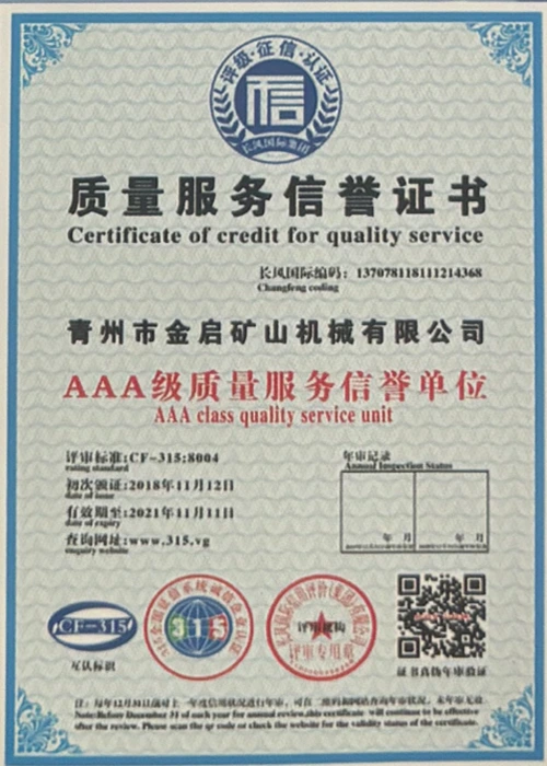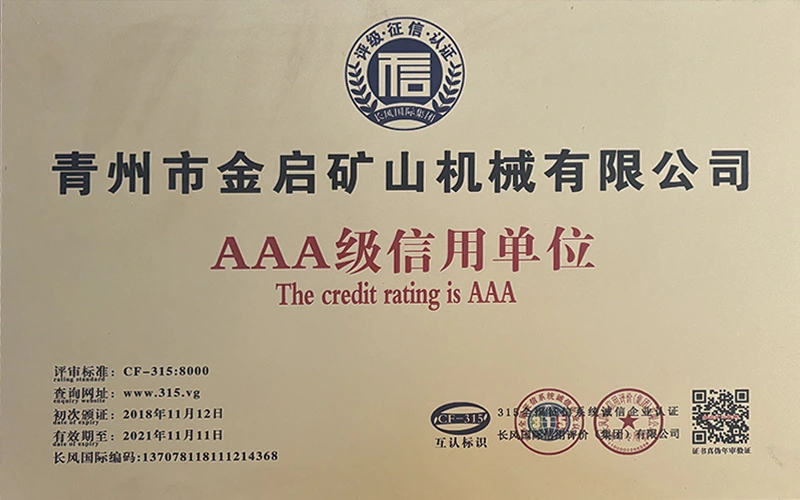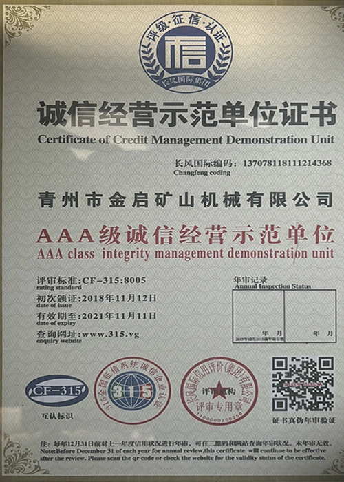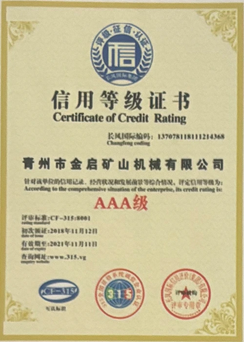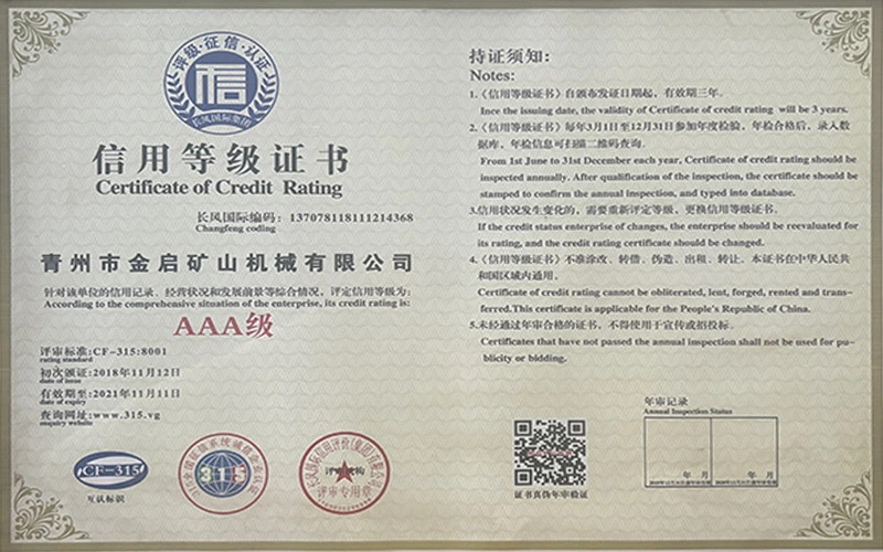 उद्योगमा वर्षौंको गहिरो अनुभवको साथ, कडा गुणस्तर नियन्त्रण र निरन्तर प्राविधिक नवाचारमा भर पर्दै, कम्पनीले आईएसओ गुणस्तर व्यवस्थापन प्रणाली प्रमाणीकरण, खानी उत्पादन सुरक्षा प्रमाणीकरण, साथै बहु आविष्कार प्याटेन्टहरू र उर्जा प्रविधिको अपरेटिङ् मोडेल-उपकरणको लागि बहुविध आविष्कार प्याटेन्टहरू र अपरेटिङ्टिङ टेक्नोलोजी अपरेटिङ्टिङ टेक्नोलोजीको लागि धेरै आधिकारिक योग्यताहरू, प्रमाणपत्रहरू र प्याटेन्ट प्रमाणपत्रहरू प्राप्त गरेको छ। गहिरो प्राविधिक शक्ति र अनुरूप उत्पादन ग्यारेन्टी प्रदर्शन।